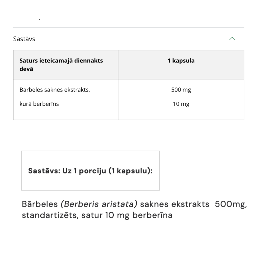 Bet abus pārdod un reklamē kā berberīns 500mg. Tikai vienā ir 500mg aktīvā vietas, otrā tikai 2% jeb 10g. Jeb atšķirība ir 50 reizes.
